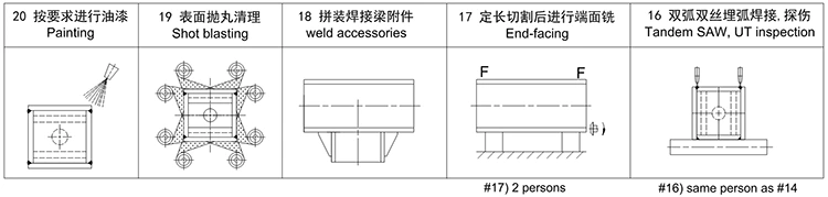 Sledi grafikon proizvodnega toka za proizvodnjo plošč do H -žarka in končnega pregleda.